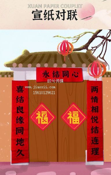 宣纸对联采用平滑,柔软的宣纸为材料;坚持材料、工艺、技术创新;将传统对联文化融入现代观念,坚持观赏性与实用性相结合,传播优秀文化;对联图画,文字,样式均可个性定制,单一产品20起订,尺寸大小均可定制,材料也可供选择,支持批量定制,价格优惠;提供精美包装OPP袋均可定制图文。