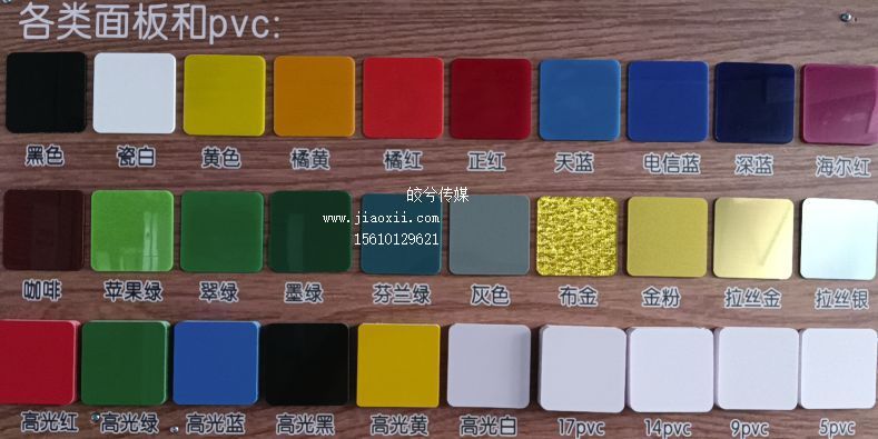 有立体造型需要时,常用PVC板。一般采用10mm以上(有12mm、15mm、20mm、30mm等不同厚度可供选择)用雕刻机切割出需要的形状,再通过UV工艺在PVC板上喷印颜色图案,PVC板只能先切出形状才能打印,因为机器在雕刻时会产生比较大的震动,会把墨水边缘震开裂,影响整体效果。